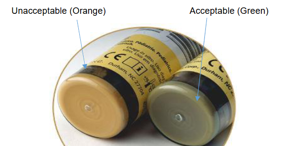 BLOOD CULTURE SETS Two sets of blood cultures from separate venipuncture sites, drawn within a 24 hour period and prior to antibiotic therapy, are recommended. If endocarditis is suspected, collect a third set. Venipunctures at least 30 minutes apart is the preferred method. Adult sets -consists of 1 aerobic bottle with a green flip cap and 1 anaerobic bottle with a orange cap. Second set consists of one aerobic bottle. (3 bottles in total). Pediatric collection -consists of a single bottle that has a yellow cap. Two bottles should be collected. ** See note below** Check the expiry date, on the container prior to use. There is a growth sensor in the bottom of the bottle. The sensor should be olive green, this also should visually be inspected prior to use. Gradations on the side of the bottle may help to measure volume of blood being introduced. IMPORTANT Bottles for adults should be inoculated with 8 to 10 mL per bottle. *Caution* - there is a strong draw on these bottles. DO NOT EXCEED the maximum 10 mL per bottle. Pediatric bottles should be inoculated with 2 to 4 mL. **Although the optimal conditions indicated above comply with best practice and manufacturer guidelines, it is recognized that with premature babies and other newborns it may not always be possible to perform more than one collection. In this case, it is imperative that the one bottle collected has the required minimum volume of 2 ml as the incidence of false negative results is high with the low volume collection*** In any venipunture the blood cultures are always the first collected. |