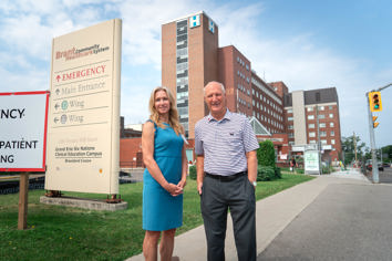 (Photo by BCHS –Bonnie Camm, president and CEO of the Brant Community Healthcare System, and Paul Emerson, chair of the redevelopment and properties committee of the Brant Community Healthcare System Board).(Article by VINCENT BALL/Brantford Expositor)